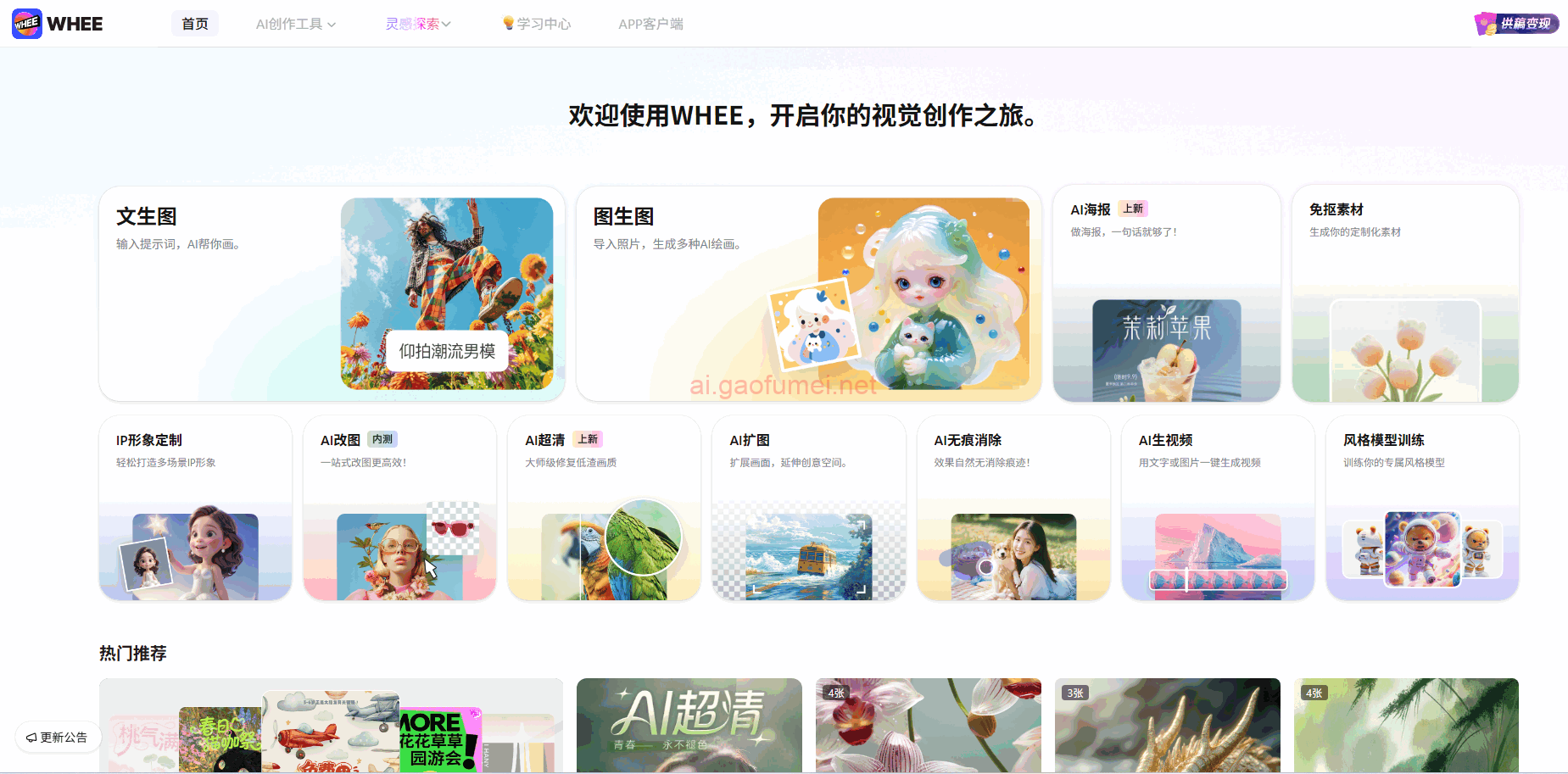 WHEE是美图基于视觉大模型MiracleVision推出的AI图片和绘画创作平台,提供一站式AI视觉创作服务。平台支持网页端和移动端,具备文生图、图生图、AI海报、AI改图等多种功能,满足不同用户的创作需求。用户能通过简单的文字描述或上传图片,快速生成高质量的视觉作品。WHEE提供风格模型训练和AI实验室功能,如照片转绘、平面转3D等,进一步扩展创作可能性。平台使用门槛低,让各类用户都能轻松上手,实现创意表达。