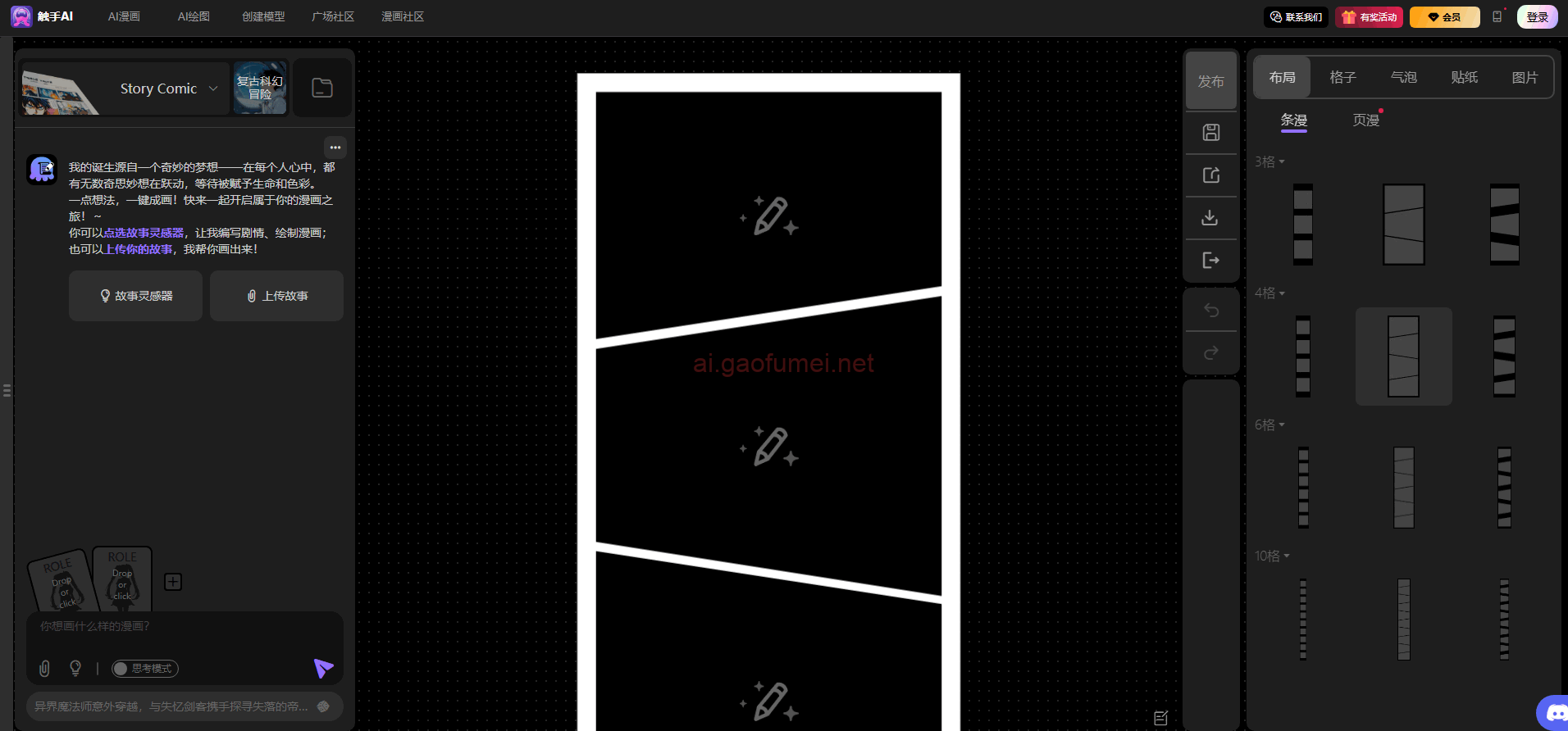 - 漫画专区,快速分镜脚本、分镜绘制、批量任务,还有AI漫画专业培训课程