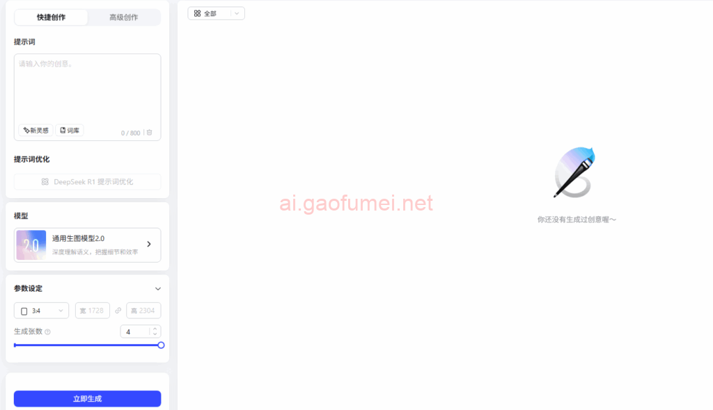 - 灵活的参数设定,用户可选择图片的尺寸和比例(常见的如1:1、2:3、3:4、9:16、3:2、4:3、16:9等),也可以自定义像素宽高和生成的张数。