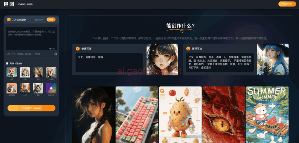 包图AI文生图是包图网推出的一站式图像、插画生成工具。一键解决图片生成及版权烦恼问题,让你实现想象照进现实,办公效率buff叠加!无需复杂的教程学习,傻瓜式文本输入,一键生成高质高清图片,你只需要提出指令,剩下的由AI来处理,操作简单易上手,办公小白必备利器。