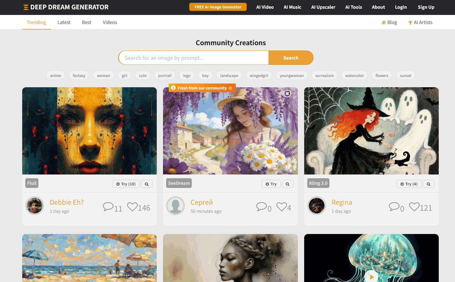 该工具为你提供了三种艺术生成模式和大量高级控制功能,可以对你的艺术进行微调。Deep Dream Generator也是一个人工智能生成艺术的社区。你可以创建个人资料页面,发布图片和分享你的AI艺术创作,点赞和关注其他创作者,探索其他人发布的作品。