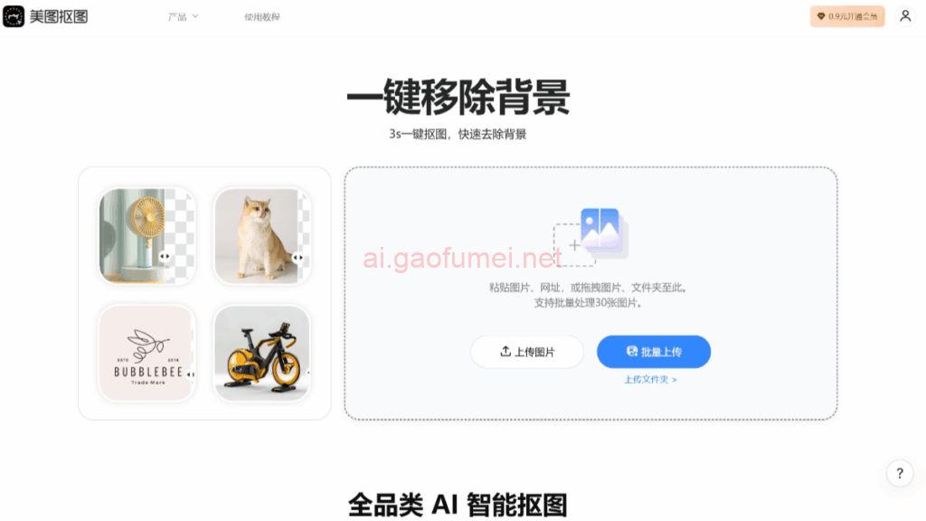 美图秀秀推出的AI智能抠图工具,一键移除背景。