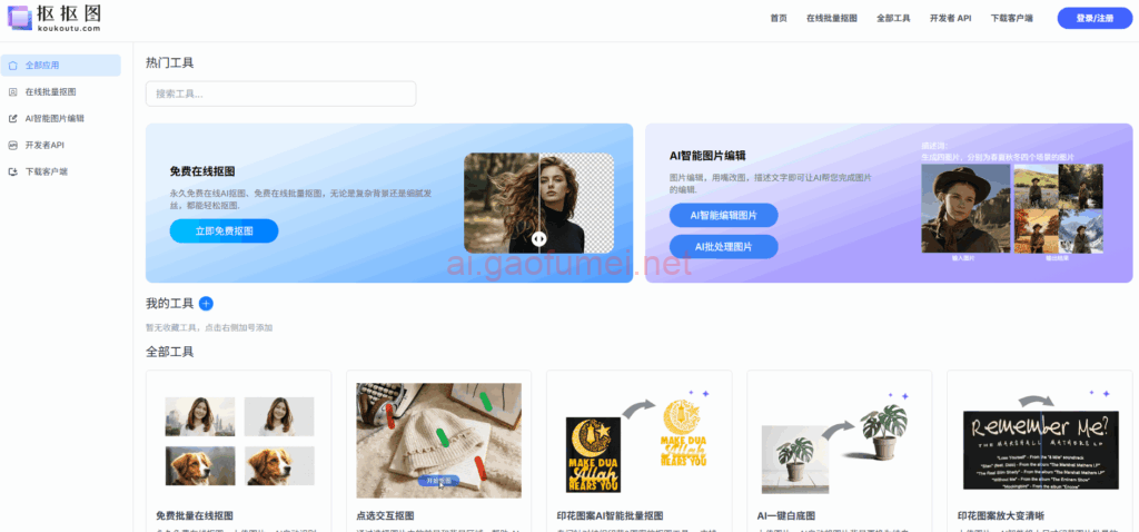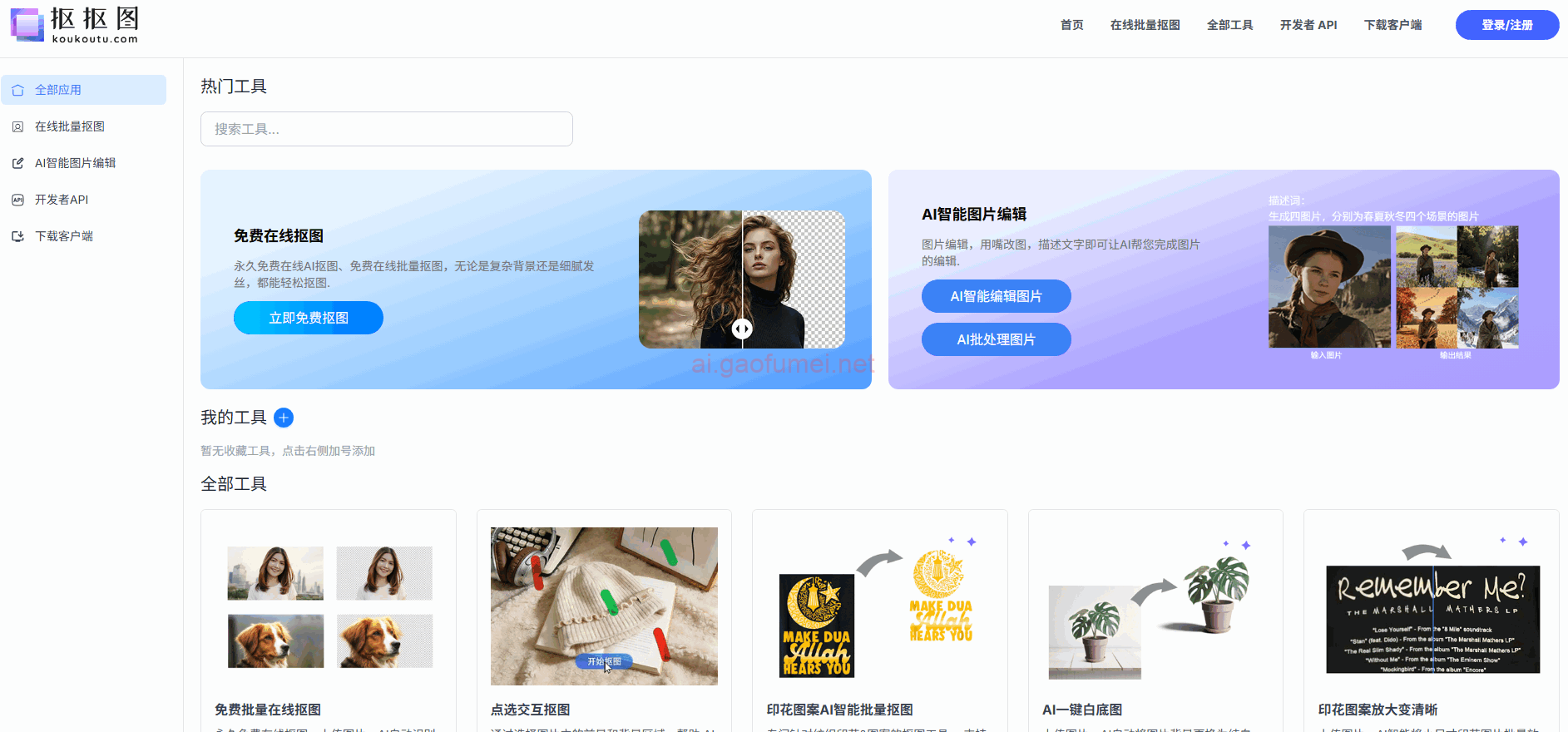 - 访问官网:访问抠抠图官网 https://www.koukoutu.com/ 。无需注册或登录,即可直接使用。