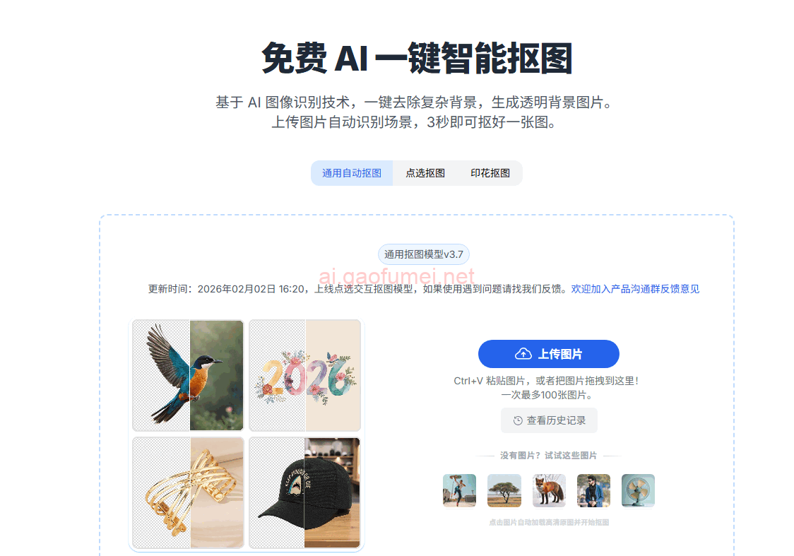 AI 智能抠图:通过先进的人工智能技术,自动精准识别图片中的主体与背景,能处理复杂细节如发丝和边缘,支持人物、商品、动物、图案等多种主体,实现高质量的抠图效果。