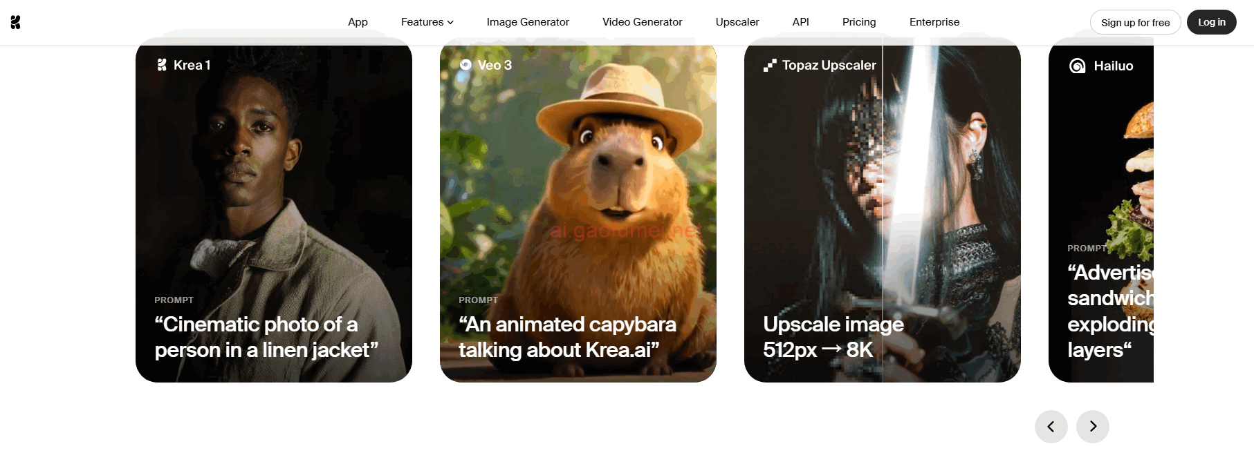 Krea AI(Krea.ai)是一个创新的AI创意创作平台,提供文生图/视频、图片放大、模型训练等功能,可以帮助用户生成多种高质量的风格、概念和作品及视觉效果。Krea ai 想做视频和图片界的 POE,目前集成了海螺、Luma、Runway 和可灵四家最好的视频生成模型。Krea是一款革命性的人工智能创意工具,将艺术创作与前沿科技完美融合,为设计师、艺术家和创意工作者提供了一个无限可能的平台。
