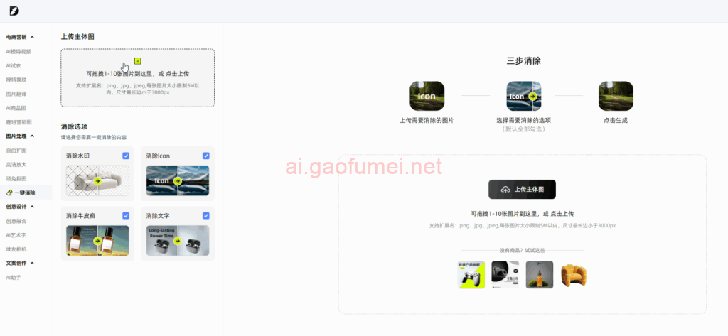 - 消除Icon:移除图片中的图标,如品牌标识或应用图标。