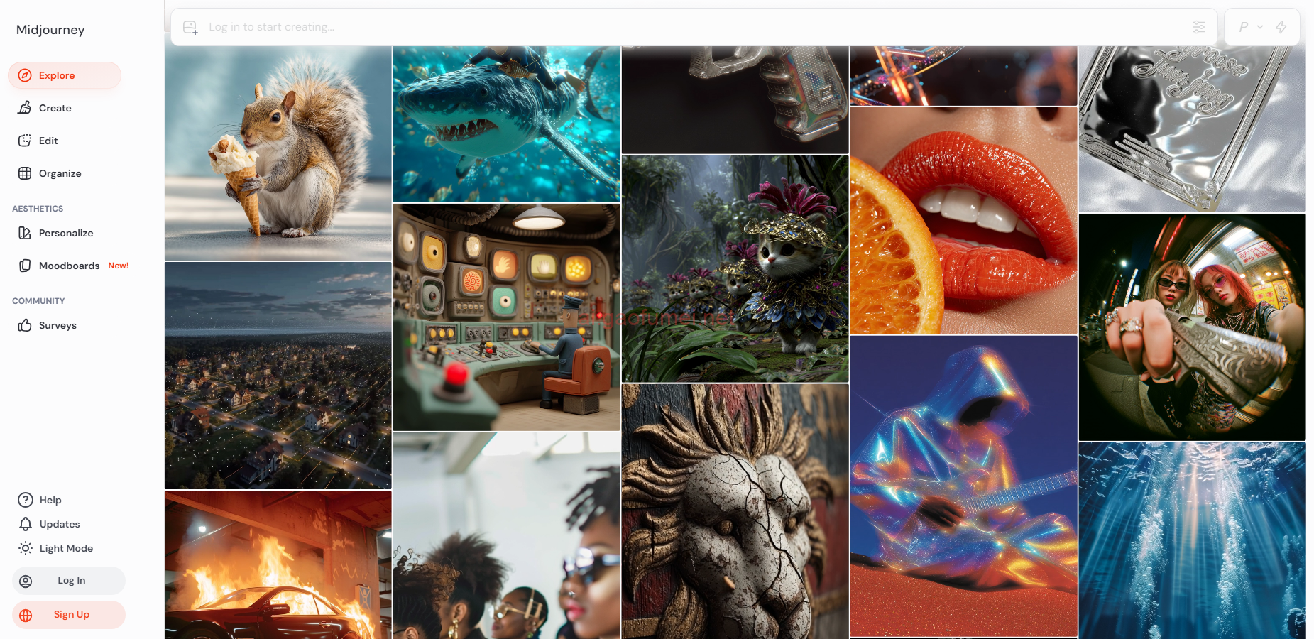 - 作品案例:Midjourney网页端提供了很多作品案例,用户可以直接复制优秀作品的提示词,修改后使用。