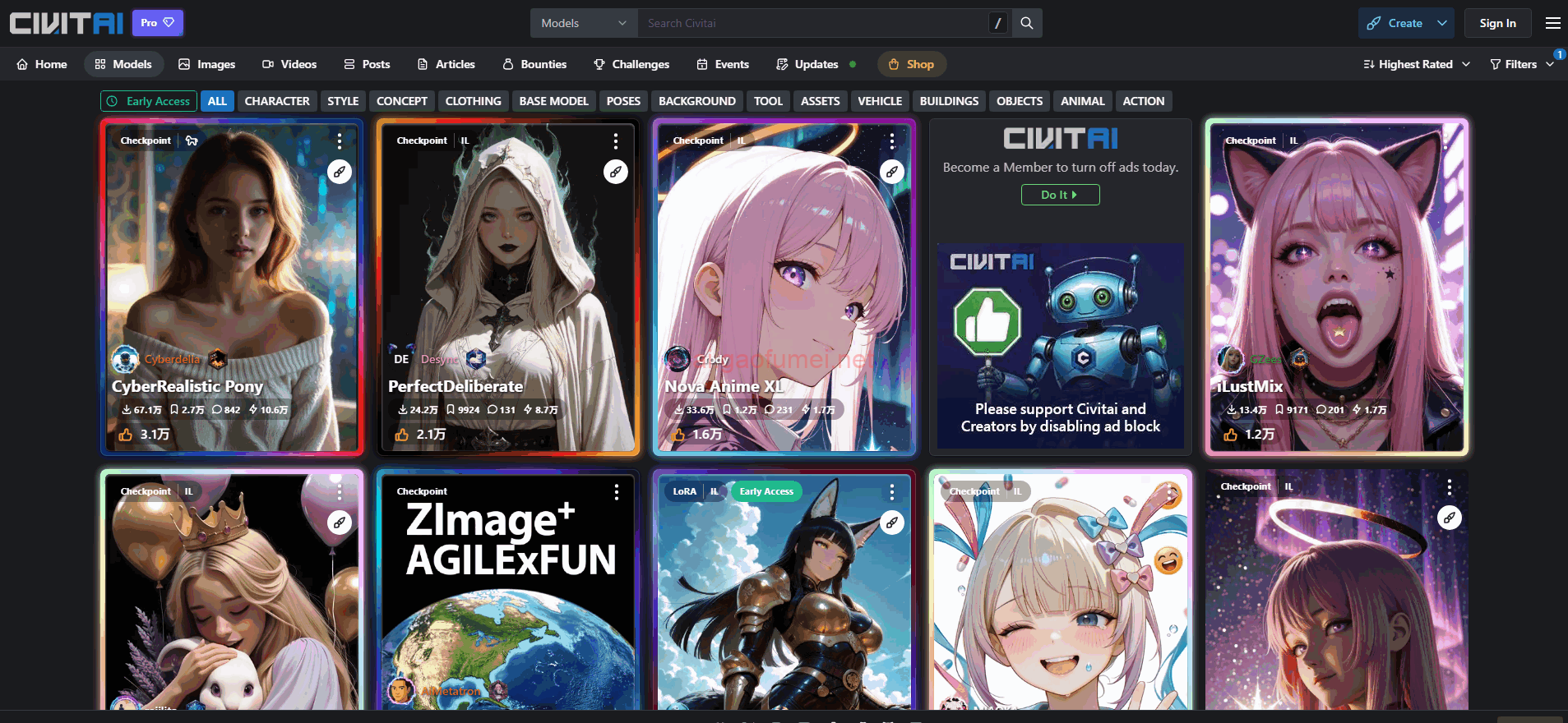 - 活跃的用户社区:Civitai 提供了一个充满活力的社区,每月超过1000多万名艺术家和 AI 爱好者在这里交流、协作和分享他们的创作