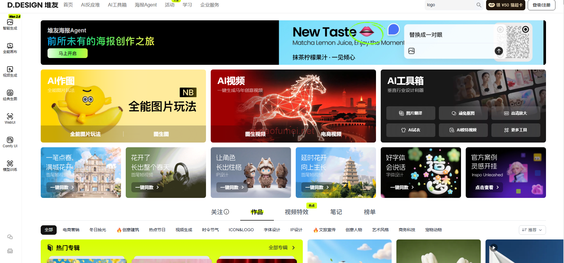 AI工具箱集成:集成顽兔抠图、鹿班营销图、高清放大等9大工具,采用先进算法优化边缘精度,支持批量处理。