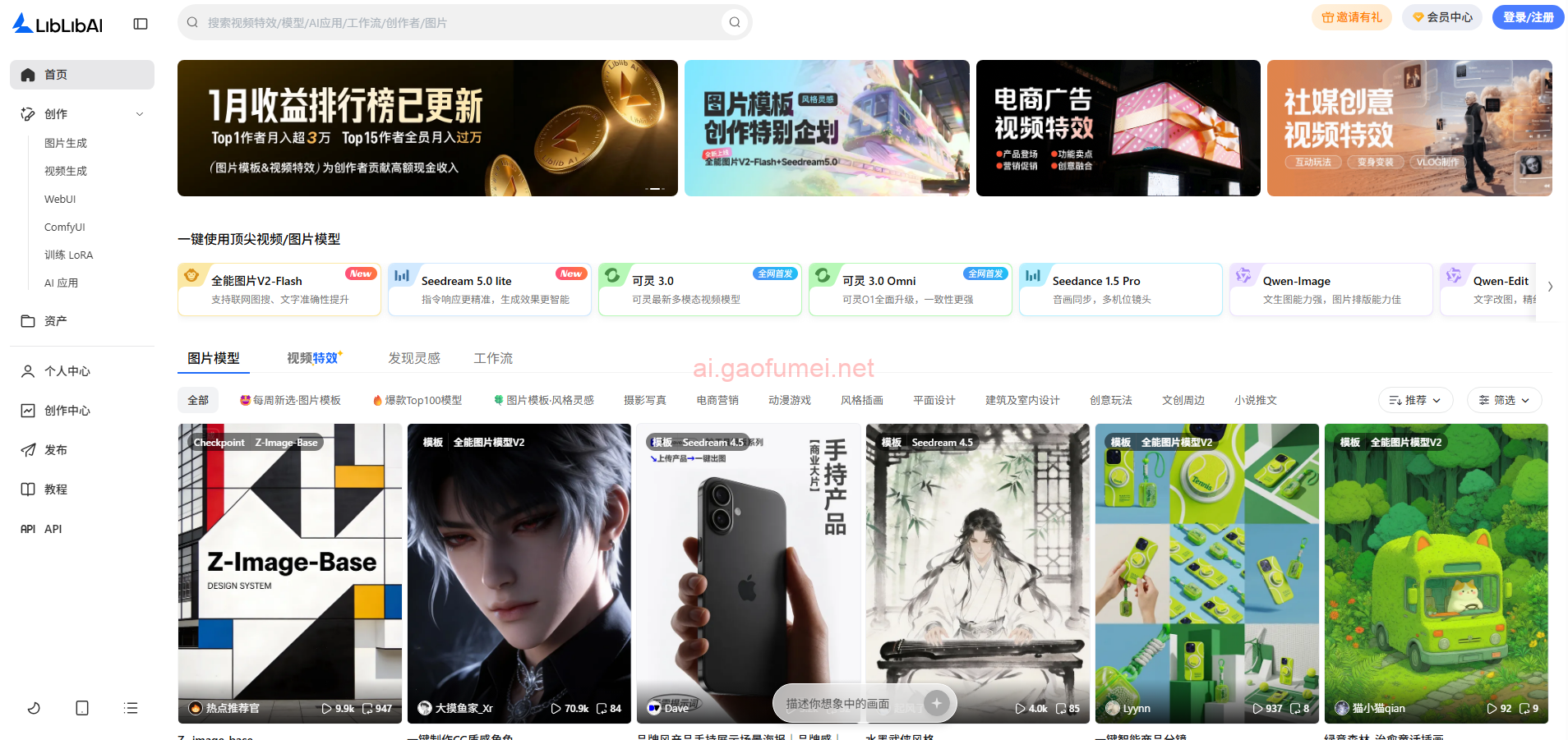 - 注册和登录:访问 LiblibAI·哩布哩布AI官网 https://www.liblib.art/ ,创建账户或登录访问服务。
