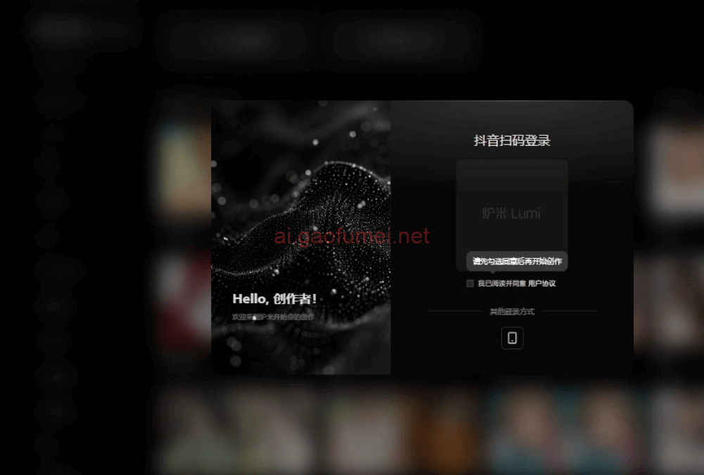 - 账号登录:支持使用抖音账号和手机号登录炉米Lumi平台。