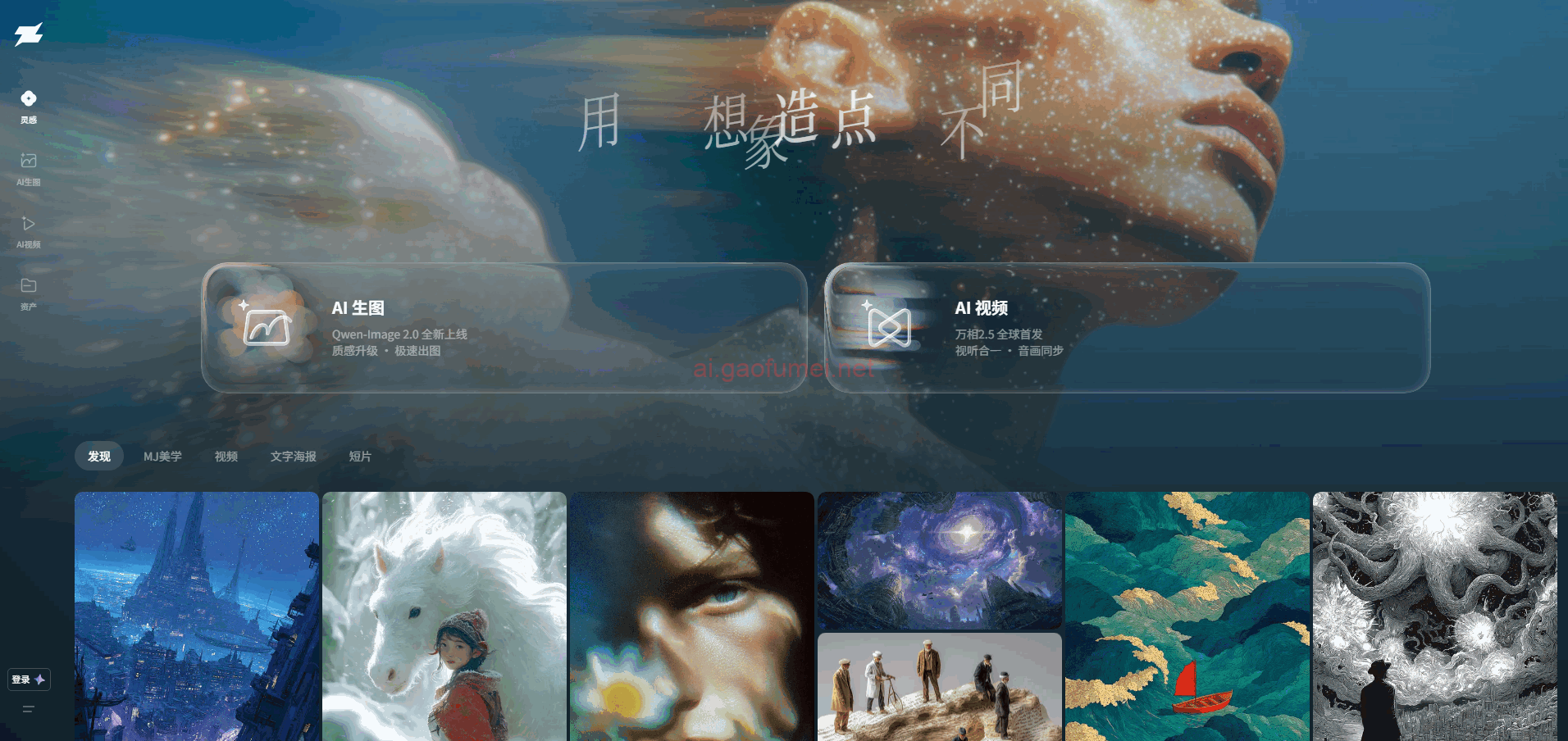- 选择功能:在官网页面上,选择“AI生图”或“AI生视频”功能。