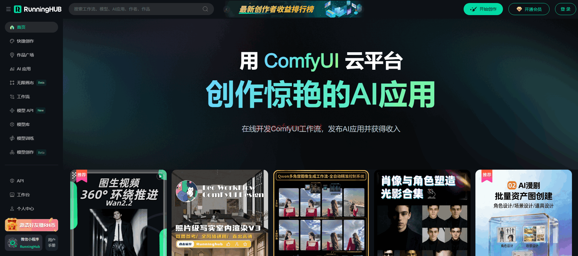 - 登录注册:访问RunningHub官网:https://www.runninghub.cn/ ,完成注册和登录。